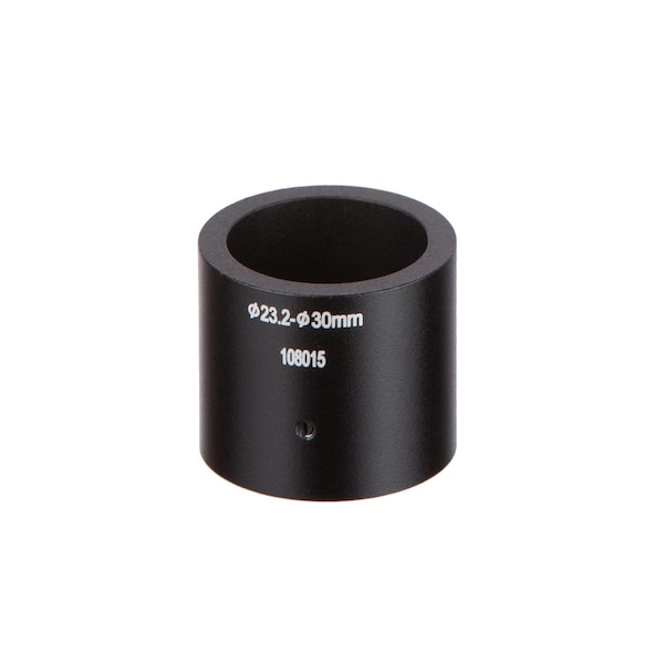 This ocular adapter allows you use a 23mm eyepiece or reduction lens with a 30mm ocular port. With this adapter, a camera with 23mm reduction lens can be mounted into a microscope's 30mm ocular port. This can also be used with 23mm telescoping eyepieces.