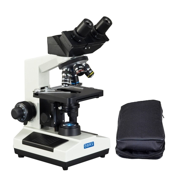 40X-2500X 3MP Digital Integrated Microscope with LED Illumination + Vinyl Case. OMAX Digital Microscopes integrate advanced digital-imaging with precision optical-microscopy. Digital-integration promotes uniformity, and presents a simplified method for setting up and using microscopes. A simple USB connection allows you to view real-time images on your PC. The integrated camera can be used for monitoring and recording still images and video. The included Windows software features a wide range of measurement and editing tools, lending itself perfectly to the classroom or clinic with its ability to record, measure, and comment.OMAX provides a large range of solutions for education, research, and industry. Building on industry standards, we provide a full range of accessories to suit your needs. The OMAX MD827Z30L brings photomicrography to the classroom or clinic. This hybrid design combines all of the fundamental functionality needed in optical microscopy with 3MP integrated digital imaging. The MD827 series microscope uses a binocular viewing head. To customize the microscope to your viewing comfort, the eyepiece spacing can be easily adjusted using a simple sliding mechanism. Diopters are available on each ocular tube to fine-tune the eyepieces, and the ocular tubes are angled at 45° to accommodate sitting or standing. Various eyepieces can be used to increase the overall optical magnification without changing the camera's magnification. The objective turret provides instant access to 4 magnification levels to easily focus in on minute details from 40X to 1000X. For traditional viewing, additional 25X eyepieces extend the maximum magnification to 2500X, and provides 6 distinct levels of magnification. The high-quality lenses are achromatically corrected to improve resolution and color accuracy. The 2-layer mechanical stage provides smooth and precise movement for examination of specimen slides. The stage's low-position controls are conveniently placed near the coaxial focus knobs for a streamlined workflow. The LED sub-stage lighting provides cool, energy-efficient illumination. The light-source is daylight balanced to produce natural colors for imaging. Additionally, specialized condensers are available for advanced techniques, such as darkfield and phase-contrast. A light-weight vinyl case is included to keep your microscope safe. The zip-up case can be used for easier transportation. It can also be used for storage to limit exposure to dust and humidi