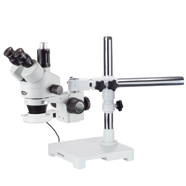 7X-45X Boom Stand Trinocular Zoom Stereo Microscope, 54 LED Light