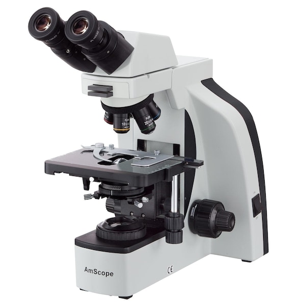 B800 Series Advanced High-performance Binocular Compound Microscope 40X-1000X Magnification. The B800 is a robust, high-performance microscope for professionals in various optical-system in a robust, upright design. With a wide range of contrast-enhancing methods available, ergonomically-designed controls, and comfort-features, this platform will serve many fields from medicine to research. The infinity-corrected, plan-achromatic optics provide high-resolution images with edge-to-edge sharpness, and optional apochromatic and semi-apochromatic objectives are available for improved resolution and transmittance. The Koehler illumination-system is designed for precision, with a variable-NA swing-condenser allowing the use of high and low magnifications with full, even coverage. Viewing Head The microscope's head is designed for precision and comfort. The super-widefield optics provide a larger field-of-view so you can see more specimen at any magnification. Compensation-free Siedentopf interpupillary adjustment allows any user to properly align the oculars without readjusting focus. For users with astigmatism or asymmetrical vision, the left ocular can be adjusted to fine-tune focus. The head is set to a 30° incline which is ideal for viewing from a standing position, and it can be rotated 360°. The quintuple objective turret provides instant access to 5 magnification levels to easily focus in on minute details from 40X to 1000X. This covers magnifications needed for studying hair follicles, cells, soil, and bacteria. The turret's reversed orientation provides more working room above the stage. These high-quality lenses are achromatically corrected to improve resolution and color accuracy, with planatic flat-field correction to provide edge-to-edge sharpness. The Stage The 2-layer mechanical stage provides smooth and precise movement for examination of specimen slides, with a large translation range for viewing larger samples. The stage's low-position controls are conveniently placed near the coaxial focus knobs for a streamlined workflow. Examining specimen slides is intuitive and precise for users at any skill level. Symmetrical focus controls are coaxially mounted for fast, intuitive focusing. Tension control lets you customize the feel to further enhance your workflow. Koehler Transmitted Illumination Built on Koehler illumination principals, the sub-stage lighting provides evenly-distributed light for optimal contrast. The rear-mounted 3W LED light-sourc