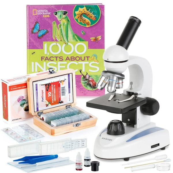 - Keep the fun and learning going with the Deluxe Insect Exploration Kit with an all-metal 5 magnification monocular microscope, 30 prepared insect slides, 5 insect information cards, our premium slide preparation kit and much more! - only from AmScope!