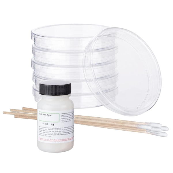 - Includes agar, Petri dishes, and swabs