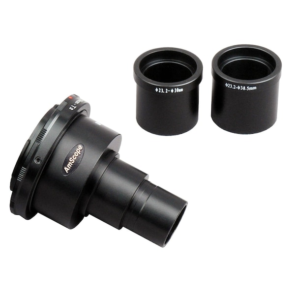 This is a brand new . With two adapters included, it offers three mounting sizes on microscope side, 23.2mm, 30mm and 30.5mm, fitting almost all kinds of microscopes including compound and stereo microscopes.