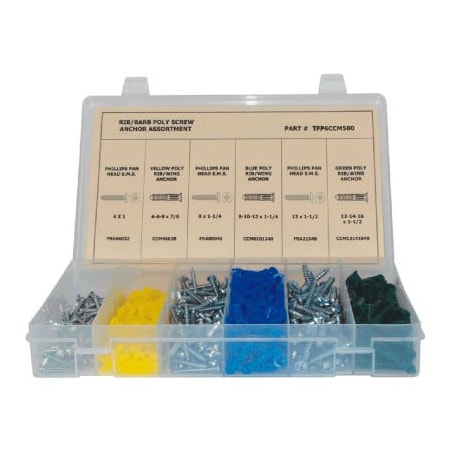 500 PC Rib / Barb Poly Screw Anchor Assortment