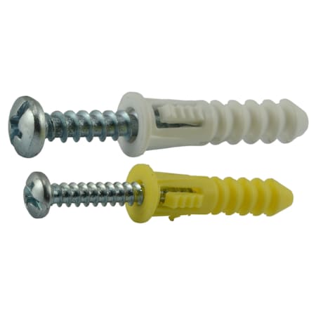 #4, #6, and #8 Pan Head Ribbed Plastic Anchors with Screws 100PK