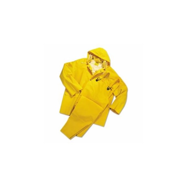 3-Pc Rainsuit, Jacket/Hood/Overalls, 0.35 mm, PVC Over Polyester, Yellow, Small