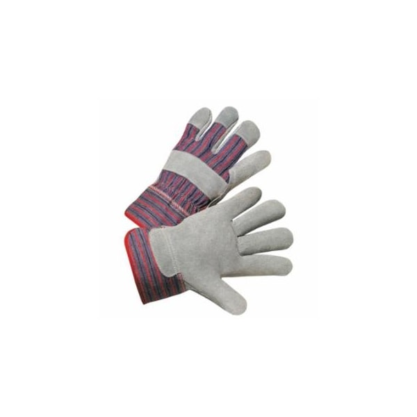 Leather Palm Gloves, Large, Cowhide, Leather, Gray, Striped Back, 12PK