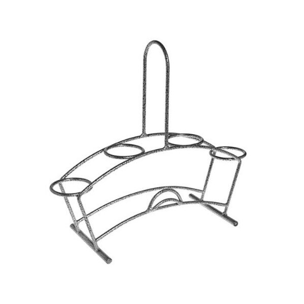 Beer flight caddy; 4 compartments; 5 1/4 in (L) x 7 in (H); Wrought iron construction; Sold by the case of (1) dozen; Serve samplers in style