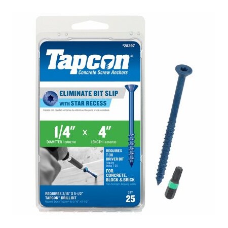 Titen Turbo Screw Anchor, 3/16 in Dia, 2-1/4 in L, Carbon Steel