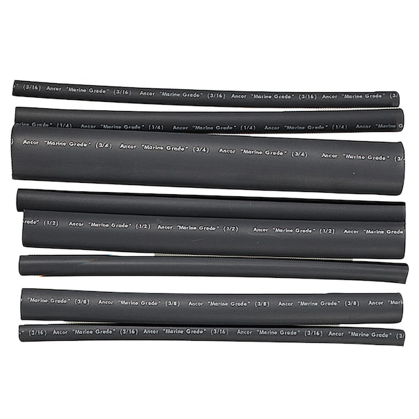 Ancor Adhesive Lined Heat Shrink Tubing - Assorted 8-Pack, 6", 20-2/0 AWG, Black