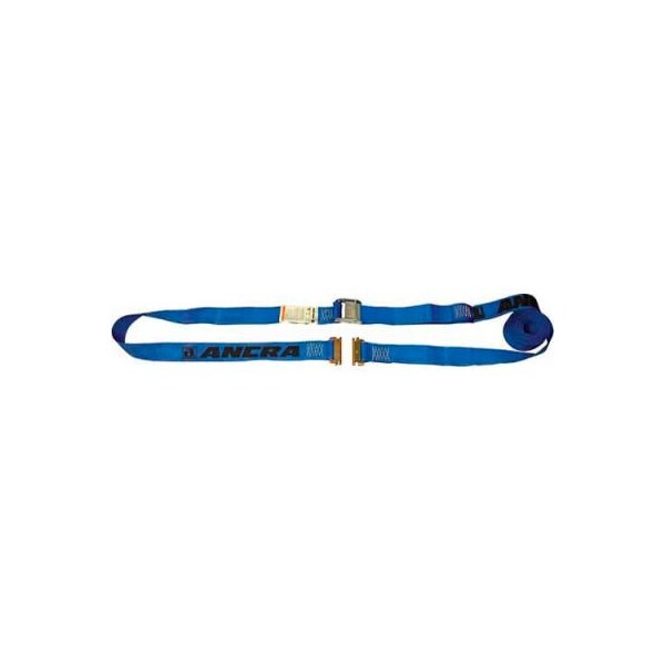 Ancra series e & a cam strap assembly 40602-19 - 20'l - spring actuated fitting 20' cam buckle strap with spring actuated e fitting for securing cargo to e or a track on the interior walls of trucks and trailers. made with 2" blue polyester webbing. blue webbing indicates 20' length for easy recognition. wll of 833 lbs.
