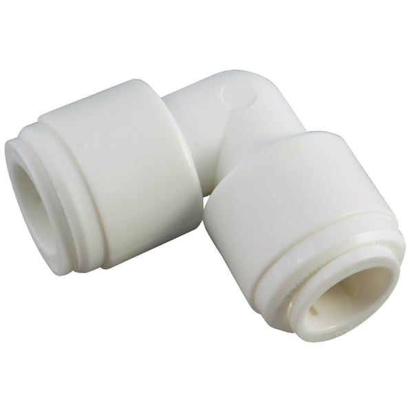 Plastic union elbow with simple yet secure push-in connections. Works on polyethylene polypropylene any semi-rigid plastic tubing copper and stainless.