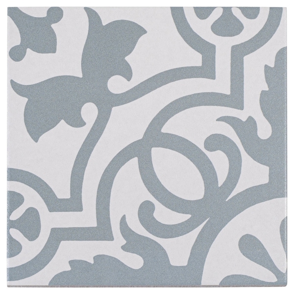 Bliss Giverny Blue 8-in. Encaustic Spanish/Moroccan Patterned Matte Porcelain Wall & Floor Tile
