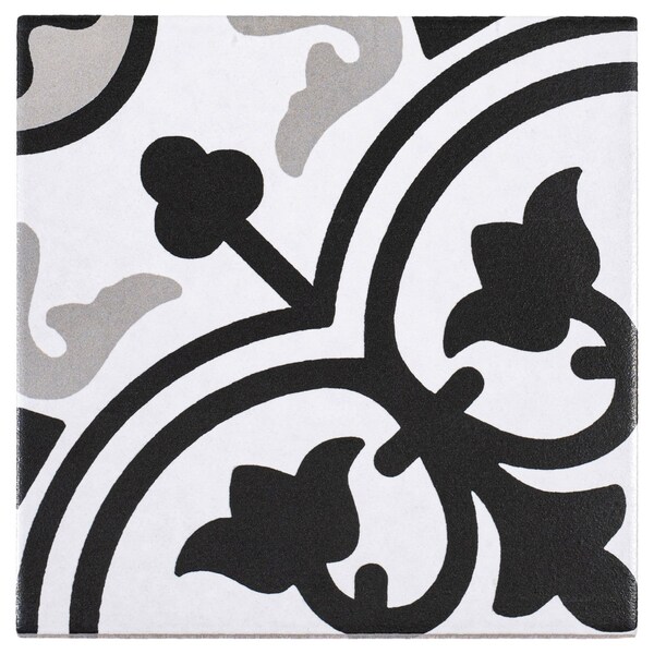 Bliss Gothic Black 8-in. Encaustic Spanish/Moroccan Patterned Matte Porcelain Wall & Floor Tile