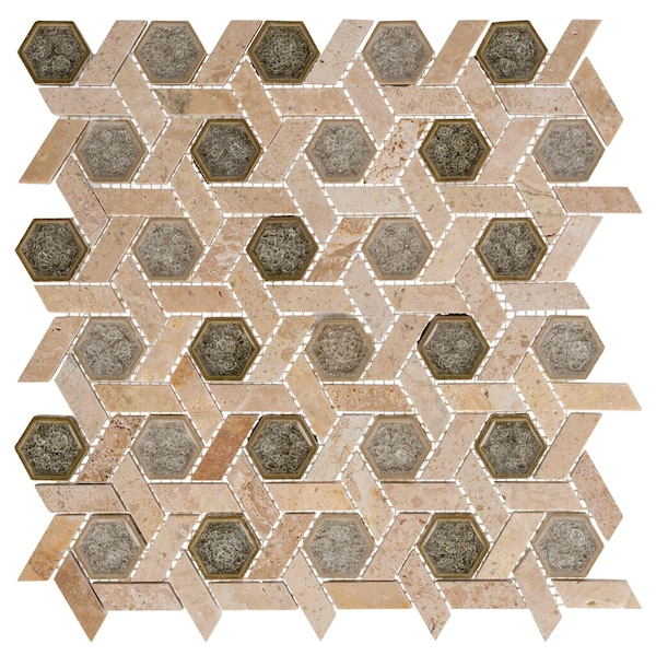 Welcome elegance and rustic sophistication into your living spaces with Andovas Exploration collection These vintage tiles will add depth and dimension to your walls with the textured surfaces and beautiful combination of glass and marble in various colour shades Each of the hexagon single tiles are slightly different from the next in texture and tone, for a distinct and breathtaking end result Sheet size 11 34 x 12 12 1 SQF