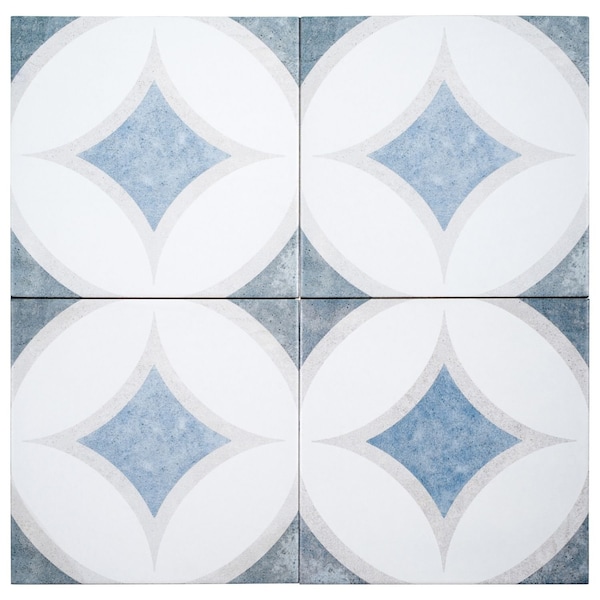 SAMPLE-Luv Adore Blue 8-in. Encaustic Spanish/Moroccan Patterned Matte Porcelain Wall & Floor Tile