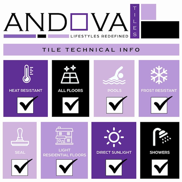 - Andova’s Tile Love Guarantee: At Andova Tile, we want you to love your tile. If you are over the moon about how much you love our products, we want to know! If you are not satisfied for any reason, we will work hard to bring the love back.