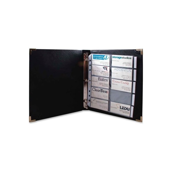 ring binder includes five vinyl tabbed pages for business cards. Each page holds 20 cards front and back. Binder will hold up to 50 pages (1,000 cards).