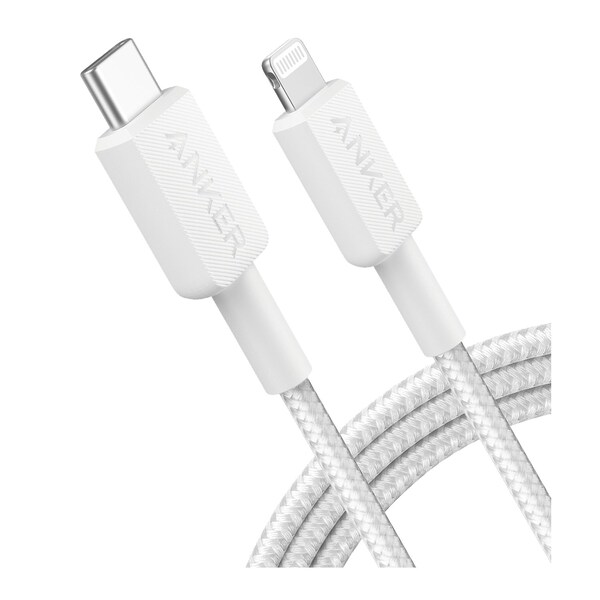 Anker - Braided Usb C To Apple Lightning Cable 6ft - White