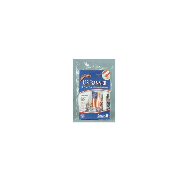 Annin 2-1/2in x 4ft Polycotton U.S. Banner. This banner is made of polycotton and is 2-1/2in x 4ft. It comes complete with a pole sleeve and fits all 1in wooden poles.