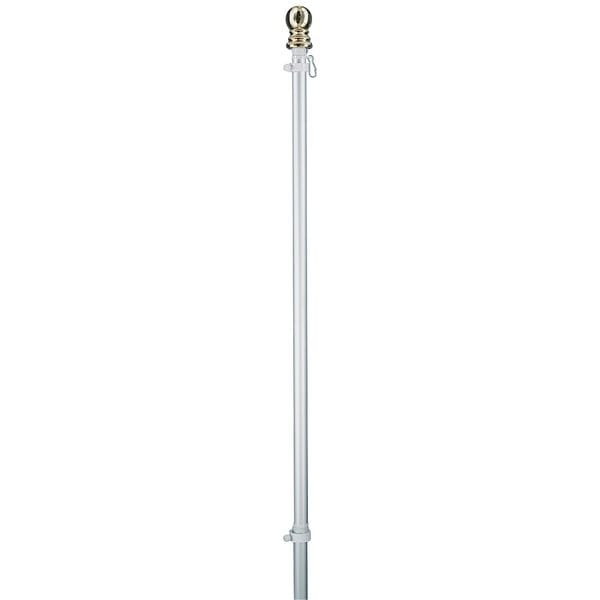 Flag Pole, Hanging and Spinning, Aluminum, Silver, Max. Flag Size 3 x 5 ft, Height Above Ground Not Applicable, Overall Height 6 ft, Bottom Dia. 1 in, Top Dia. 1 in, Ball Dia. 1 in, Includes Hanging Hardware, Metallic Round Ball Ornament