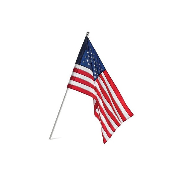 25' x 4', Nylon US Banner, 1 Piece 5' Aluminum Pole, With 2 Way Cast Aluminum Bracket Sleeved Banner Has Embroidered Stars Sewn Stripes