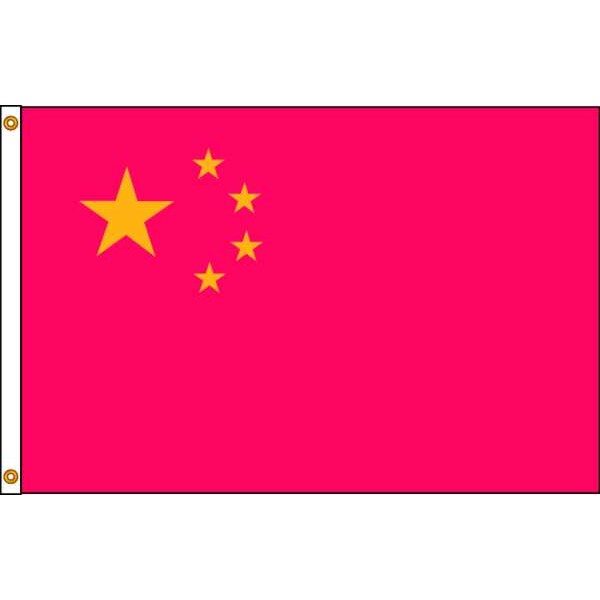 Foreign Nation Flag, China, Indoor/Outdoor, Style Screen Printed, Single/Reverse Image, Header and Grommets, Flag Height 4 ft., Flag Width 6 ft., Min. Flagpole H 25 Ft., Material 200 Denier Nylon, For Use With Flag Staff or Flag Pole