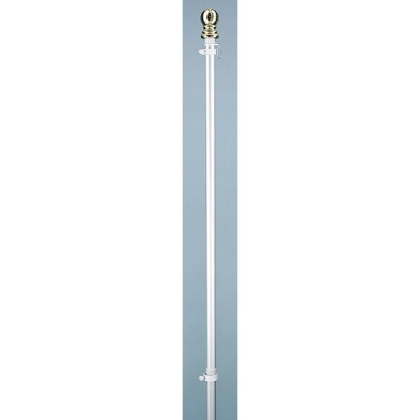 Flag Pole, Hanging and Spinning, Aluminum, Brushed Finish, White, Max. Flag Size 3 x 5 ft, Height Above Ground Not Applicable, Overall Height 6 ft, Bottom Dia. 1 in, Top Dia. 1 in, Ball Dia. 1 in, Wall Thickness 1/32 in, Includes (2) Flag Fasteners, Ball Top, Bracket, Snap and Swivel Ring to Fit 1 in Brackets
