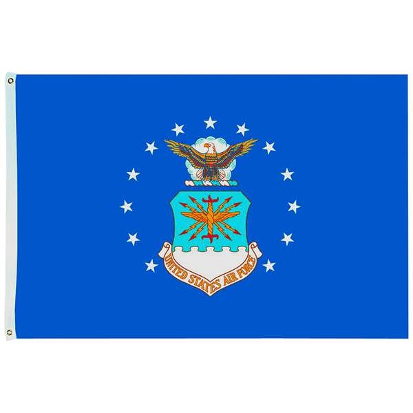 Armed Forces Flag, US Air Force, Indoor/Outdoor, Style Screen Printed, Single/Reverse Image, Header and Grommets, Flag Height 4 ft., Flag Width 6 ft., Min. Flagpole H 25 Ft., Material 200 Denier Nylon, For Use With Flag Staff or Flag Pole