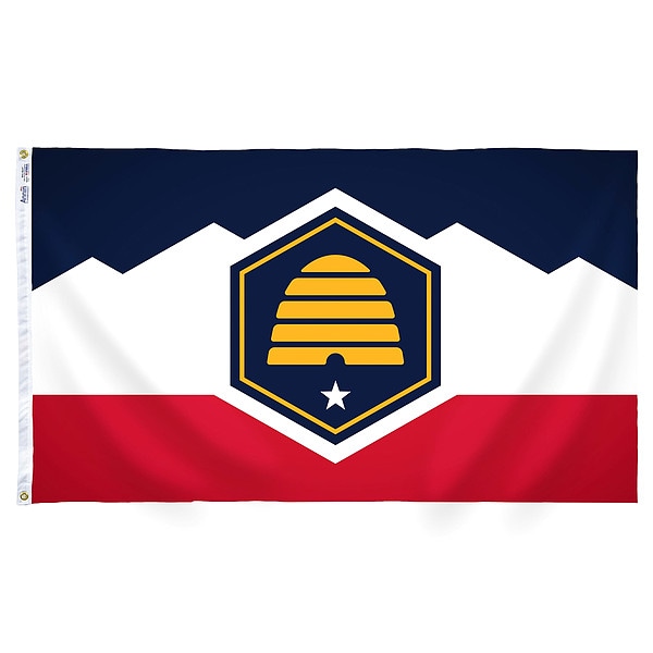 State Flag, Utah, Outdoor, Style Graphic Showing Reverse on Back Side, Canvas Header, Grommets, Flag Height 3 ft., Flag Width 5 ft., Material 200 Denier Solar Max Nylon