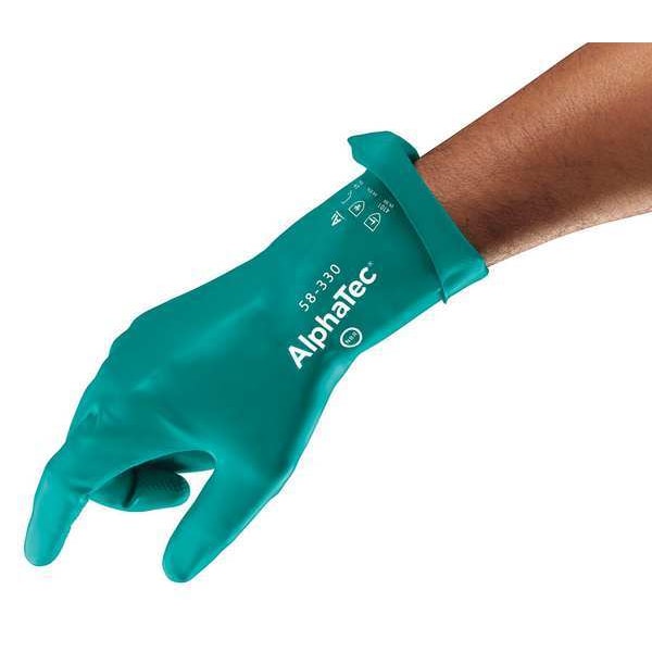Chemical-Resistant Gloves, Nitrile, Fingers Only, 14 mil, 12 in, Cuff Gauntlet, Lining Nitrile, Glove Size 10, Color Green, Unsupported, Standards ANSI, EN 388, EN 374, Resists Chemicals, 1 Pair