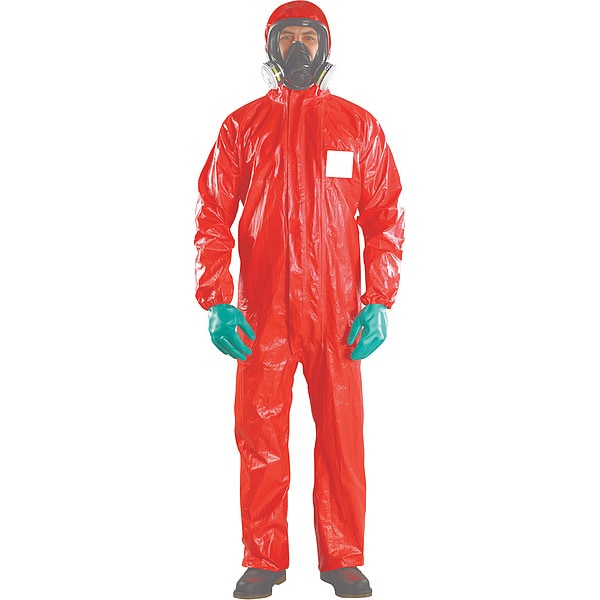 Chemical Resistant Coverall, L, Red, Chemical Laminate
