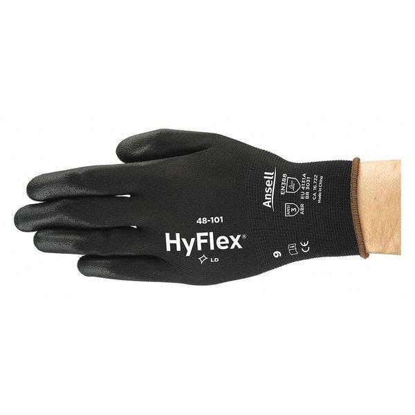 Coated Gloves, Polyurethane, Smooth, Palm, 3 Abrasion Level, Black, M 1 PR