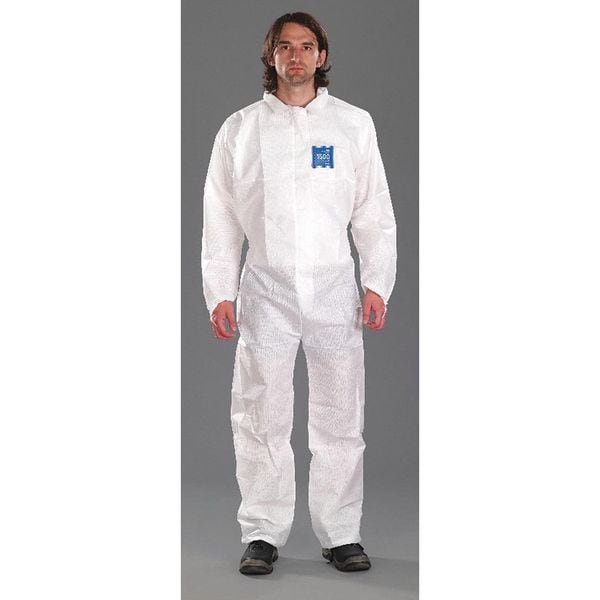 Collared Disposable Coveralls, Ankle Closure Elastic, Anti-Static Yes, Closure Features Storm Flap, Two-Way Zipper, Closure Type Zipper, Color White, Coverall Style Collared Coverall, Cuff Style Elastic, EPA Protection Level Not Rated, Features Proven Protection, Filters 99.9 Percent of Particles greater than 3 Microns, Package Quantity 25