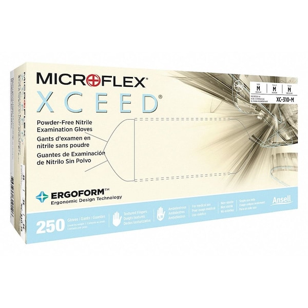 Microflex Disposable Nitrile Gloves, Exam Grade, Texture Finger, Powder-Free, M, Blue, PK250