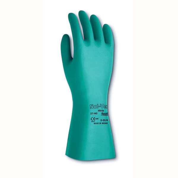 Solvex 13", 15Mil, Green, Flocked Lined, Nitrile Rubber, Sandpatch, Straight Cuff, Sz 9 (Discontinued)