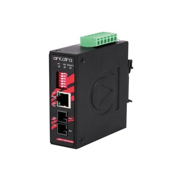 Antaira IMP-C100-S3-T - Compact 10/100TX To 100FX Industrial PoE+ Media Converter, Single Mode 30KM, SC Connector; EOT -40 Degre