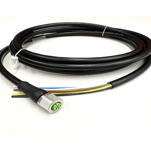 M12 K Code 5P female to Open Cable, 5 Meter, Wire 14AWG*5C Black, IP68 Protection
