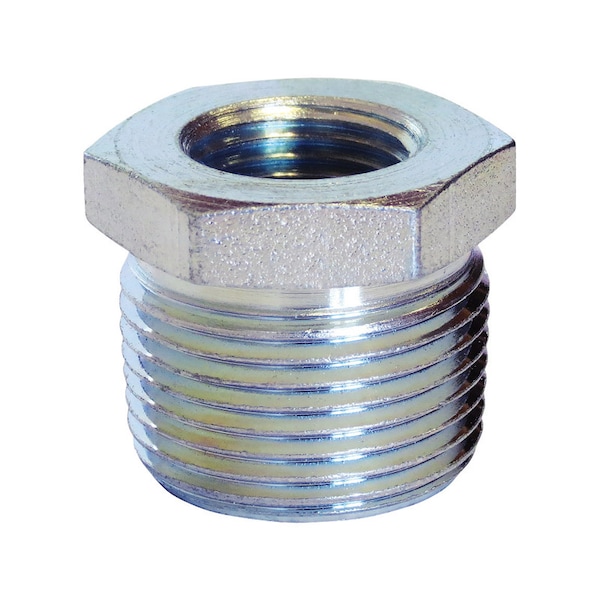 Hex bushing for connecting two pipes of different sizes. Male National Pipe Taper (NPT) threads on the outside and female NPT threads on the inside for creating tighter seals than straight threads. Made from steel for greater rust resistance than iron. Hexagonal head for increased leverage and use with a wrench during installation and disassembly. Meets specifications ASTM A53 and ASME B 1.20.1 for quality assurance)