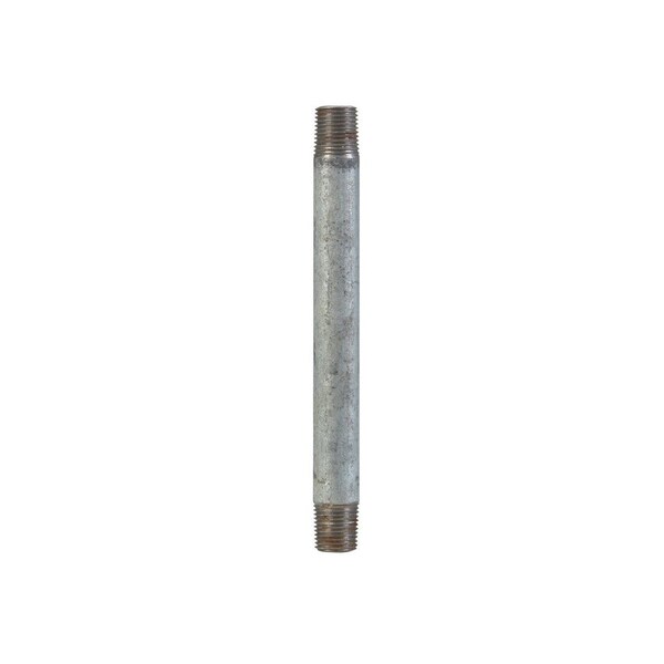 This Anvil nipple is a schedule 40 steel pipe fitting with a galvanized finish and male national pipe taper NPT threads on both ends for joining two pipes or extending pipe length.