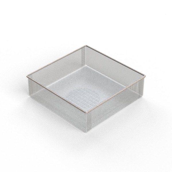 Light Duty Basket: 10Lx10Wx3H, 304 SS, No Handles, Mesh: 4 x .032