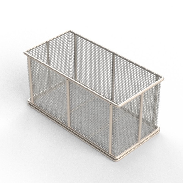 Rectangular Stainless Steel Wire Mesh Basket. For Ultrasonic Cleaning, Degreasing, Dipping and Cleaning Parts. 12L x 6W x 6H approx. outside dimensions excluding handles. 1/4 Dia. Rod Frame with all joints TIG welded for strength. No Handles, No Lid. Lined with 4 Mesh x .063 Woven Wire .187 Openings, 56% Open Area fully resistance welded into the frame and ground smooth. 304 Stainless Steel, Natural Finish. Reference Part #TMT-120060060-N04S . Est. wgt: 4.3 lbs. Capacity: 45 lbs.
