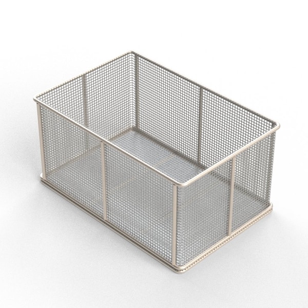 Rectangular Stainless Steel Wire Mesh Basket. For Ultrasonic Cleaning, Degreasing, Dipping and Cleaning Parts. 18L x 12W x 9H approx. outside dimensions excluding handles. 5/16 Dia. Rod Frame with all joints TIG welded for strength. No Handles, No Lid. Lined with 2 Mesh x .063 Wire .437 Openings, 76% Open Area fully resistance welded into the frame and ground smooth. 304 Stainless Steel, Natural Finish. Reference Part #TMT-180120090-N02S . Est. wgt: 8.8 lbs. Capacity: 45 lbs.