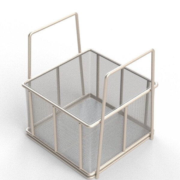 Rectangular Stainless Steel Wire Mesh Basket. For Ultrasonic Cleaning, Degreasing, Dipping and Cleaning Parts. 6L x 6W x 4H approx. outside dimensions excluding handles. 3/16 Dia. Rod Frame with all joints TIG welded for strength. Stacking Dual Grip Handles, 3 H x 5 W. Lined with 30 Mesh x .012 Woven Wire .021 Openings, 40% Open Area fully resistance welded into the frame and ground smooth. 304 Stainless Steel, Natural Finish. Reference Part #TMT-060060040-A30S . Est. wgt: 1.3 lbs. Capacity: 45 lbs.