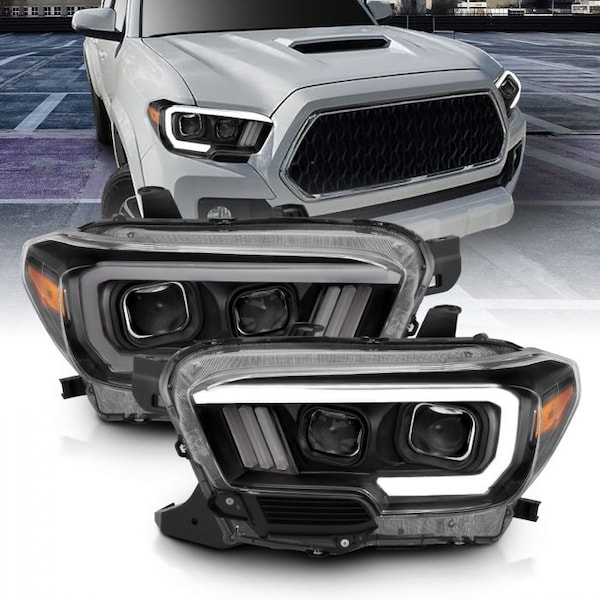16-C TACOMA PROJECTOR HEADLIGHTS W/PLANK STYLE DESIGN BLACK/AMBER W/DRL DRIVE/PASS