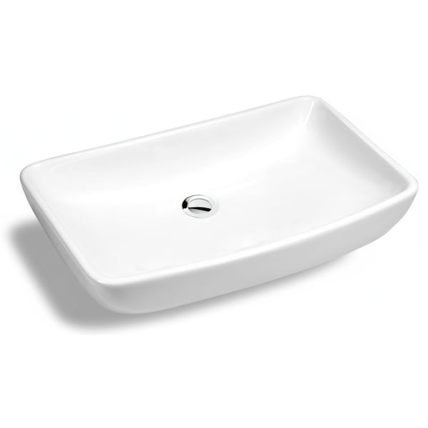 23 in Rectangular Ceramic Vessel Sink Basin, Glossy White, Curved Edge, Countertop Bathroom Vanity