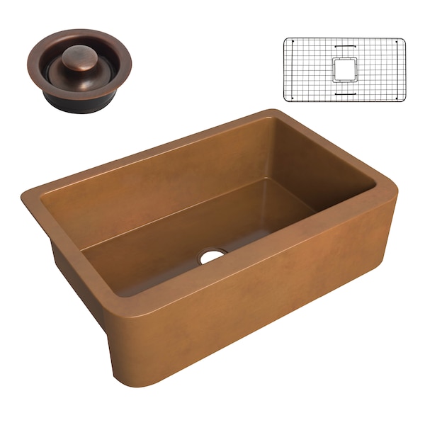 ANZZI presents the latest trending in modern antique Cyprus series farmhouse kitchen sink. All ANZZI Cyprus kitchen sinks are handcrafted using only Rhino Alloy certified artisan copper. This gorgeous farmhouse sink will transform your kitchen into an expression of yourself on par with the finest of culinary arts. Become a member of the ANZZI family and experience why Perfection is our Tradition.Single bowl kitchen sinkShips within 24 hours of order processing Every piece is fully handmade from start to finish Crafted using RHINO ALLOY certified copper Handmade process will result in subtle variations in color, shape and finish Matching stopper and basin grid included One piece construction