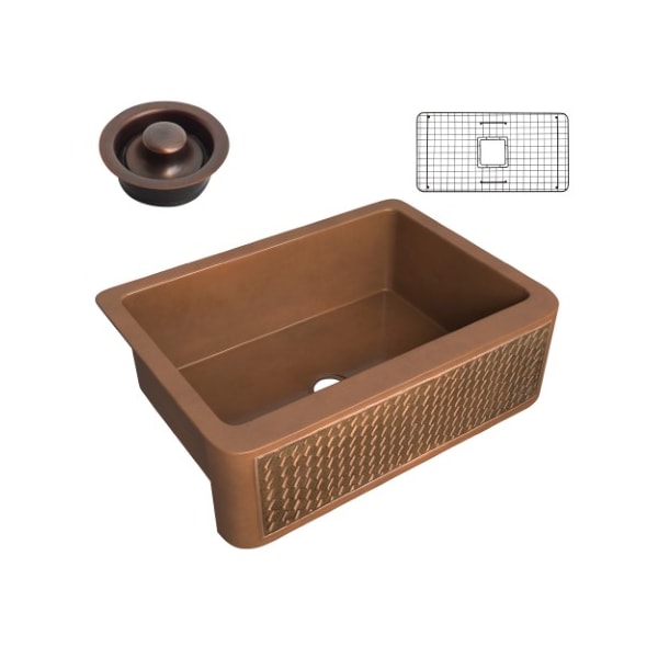 ANZZI presents the latest trending in modern antique Edessa series farmhouse kitchen sink. All ANZZI Edessa kitchen sinks are handcrafted using only Rhino Alloy certified artisan copper. This gorgeous farmhouse sink will transform your kitchen into an expression of yourself on par with the finest of culinary arts. Become a member of the ANZZI family and experience why Perfection is our Tradition.Single bowl kitchen sinkShips within 24 hours of order processing Every piece is fully handmade from start to finish Crafted using RHINO ALLOY certified copper Handmade process will result in subtle variations in color, shape and finish Matching stopper and basin grid included One piece construction