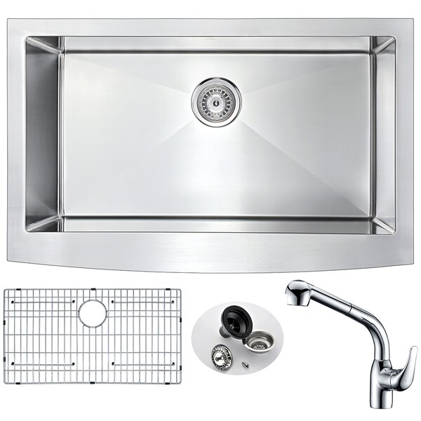 ANZZI presents the 32 in. ELYSIAN SERIES hand crafted farmhouse kitchen sink. Representing the latest in modern home fixture designs and traditional European crafting technique this stunning display of artistry is hand shaped to perfection using RHINO ALLOY certified 16-Gauge 304 stainless steel. Only ANZZI hand crafted farmhouse kitchen sinks utilize RHINO ALLOY certified materials for superior strength and quality. The cavernous deep soaking basin will comfortably accommodate the largest dish loads including pots, pans and more. And every ANZZI sink features extra-large Echo-STOP sound dampening pads and a layer of protective composite coating to further quiet noise and prevent condensation. Each ANZZI faucet has been certified as Water Sense approved with solid brass construction and valve included. Well defined diversion lines ensure quick and total water drainage and the subtly curved corners allow of easier cleaning. ANZZI carries a proud tradition of crafting long lasting, quality home fixtures. With ANZZI perfection is our tradition.Single deep soak basin openingANZZI Harbour kitchen sink faucet ANZZI Echo-STOP sound absorbing technology drastically reduces noise Triple coated underside shielding prevents condensation Dimensions: 32.875 in. L x 20.75 in. W x 10 in. H (Basin Depth: 10 in.) Minimum Cabinet Space: 33 in. Standard 3.5 in. drain opening Laser precise diverting lines allow for more efficient water drainage Quality assured handmade construction RHINO ALLOY certified 304 Stainless Steel with 16 gauge strength cUPC certified Lustrous Satin finish Includes perfect fitting strainer and drain assembly, insert strainer basket, mounting hardware Ships from factory within 24 hours once order is processed