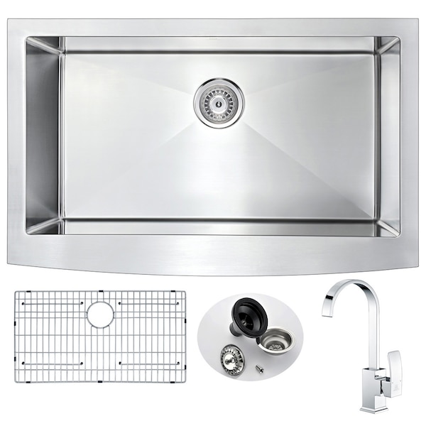 ANZZI presents the 36 in. ELYSIAN SERIES hand crafted under mount kitchen sink. Representing the latest in modern home fixture designs and traditional European crafting technique this stunning display of artistry is hand shaped to perfection using RHINO ALLOY certified 18-Gauge 304 stainless steel. Only ANZZI hand crafted kitchen sinks utilize RHINO ALLOY certified materials for superior strength and quality. The cavernous deep soaking basin will comfortably accommodate the largest dish loads including pots, pans and more. And every ANZZI sink features extra-large Echo-STOP sound dampening pads and a layer of protective composite coating to further quiet noise and prevent condensation. We have paired this sink with the ANZZI Opus Kitchen Sink Faucet. Each ANZZI faucet has been certified as Water Sense approved with solid brass construction and valve included. Well defined diversion lines ensure quick and total water drainage and the subtly curved corners allow of easier cleaning. ANZZI carries a proud tradition of crafting long lasting, quality home fixtures. With ANZZI perfection is our tradition.Single deep soak basin openingANZZI Opus kitchen sink faucet KF-AZ035 ANZZI Echo-STOP sound absorbing technology drastically reduces noise Triple coated underside shielding prevents condensation Dimensions: 35.875 in. L x 20.75 in. W x 10 in. H (Basin Depth: 10 in.) Minimum Cabinet Space: 36 in. Standard 3.5 in. drain opening Laser precise diverting lines allow for more efficient water drainage Quality assured handmade construction RHINO ALLOY certified 304 Stainless Steel with 18 gauge strength cUPC certified Lustrous Satin finish Includes perfect fitting strainer and drain assembly, insert strainer basket, mounting hardware Ships from factory within 24 hours once order is processed